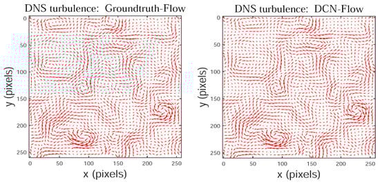 The flow vectors of DNS-turbulence estimated by our method (DCN-Flow).
