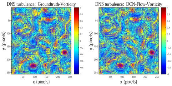 The color-coded vorticity field of DNS-turbulence estimated by our method (DCN-Flow).