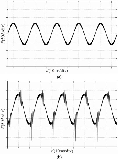 Grid-connected converters are broadly employed in power generation from clean energy and power quality regulation fields. Usually, the output filter is necessary to suppress the switching ripple current injected into the grid. In many studies, the inductance value of output filter is regarded as constant [1,2,3,4]. However, owing to higher permeability and lower cost, a large number of engineering cases show that when popular materials such as “Fe–Si”, “Fe–Si–Al”, “Fe–Ni–Mo”, and “Fe–Ni” are used for powder core, the inductance value of the output filter will reduce as the absolute value of the inductor current rises [5]. The inductance variation may cause a power quality problem of grid-injected current. Therefore, in order to reduce the low-order harmonics in the current caused by the inductance variation, a proportional–integral (PI) control method based on the combination of a linear and non-linear controller is proposed in [6]. Moreover, a new control strategy based on a proportional resonant (PR) regulator is given in [7]. By using the online adaptive estimation of a non-linear filter inductor, the harmonic compensators’ gains of the PR regulator can be reduced, and the acceptable total harmonic distortion (<5%) is achieved.