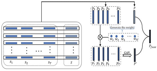 As shown in Figure 4, the input of MFAM module can divide into a frame-level feature vector and sequence-level feature vector, with dimensions of and , respectively, where represents the number of channels, represents the sequence length, and represents the number of preset body parts.