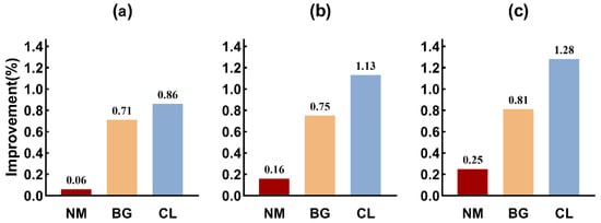 Performance comparison experiment between MFAM and RFAM. Results are improvement compared to baseline (GaitSlice*) of rank-1 accuracies without view variation, excluding the identical-view cases. (a) Accuracy improvement of introducing RFAM (b); Accuracy improvement of introducing MFAM; (c) Accuracy improvement of introducing MFAM and RFAM.