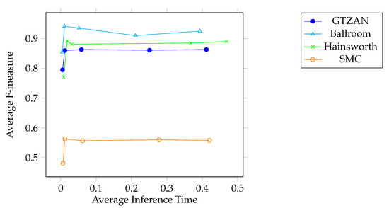 - Fuentes, M.; McFee, B.; Crayencour, H.; Essid, S.; Bello, J. Analysis of common design choices in deep learning systems for downbeat tracking. In Proceedings of the 19th International Society for Music Information Retrieval Conference, Paris, France, 23–27 September 2018. [Google Scholar]