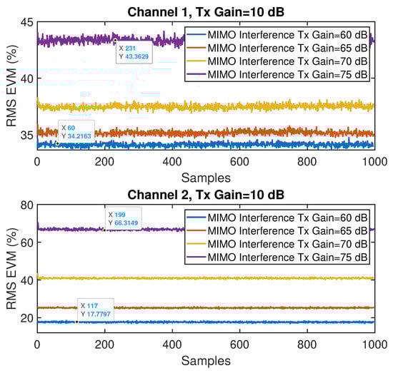 - The EVM of the digital communication link is time-varying in a time-varying environment. For the fixed Tx-Rx gain combination, the EVM is time-varying when the stirrer is moving.