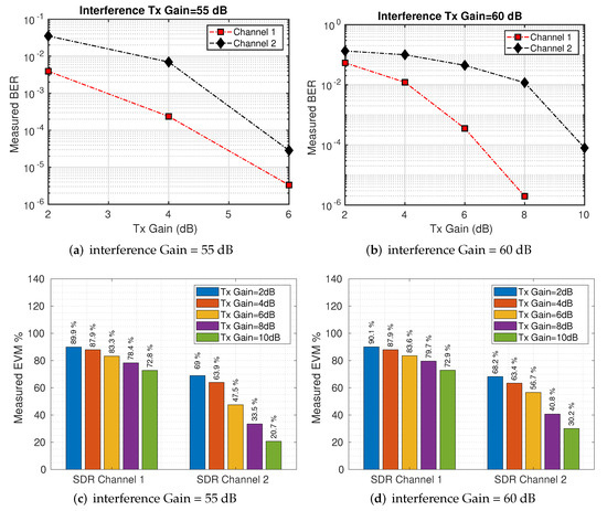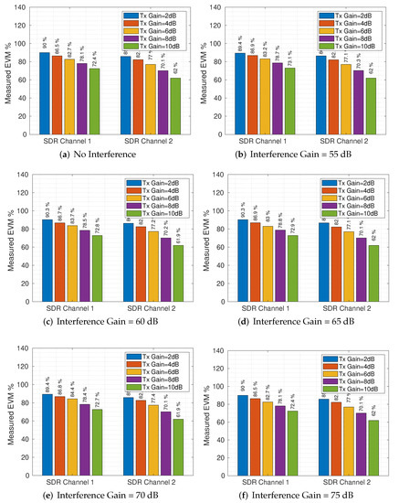 - For the fixed Tx-Rx gain combination, the EVM and BER degrade in the presence of the interference, and further degrade when the magnitude of interference increases.
