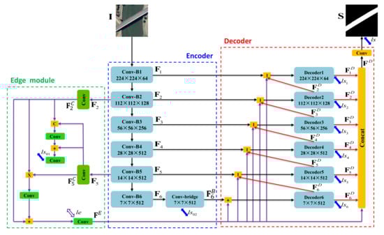 In this way, we can obtain six levels of decoder features, namely, . After that, we combine all decoder features and the edge cues, which can be written as