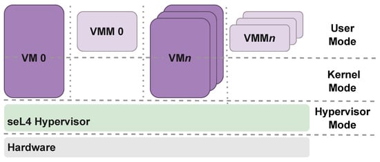 - seL4 Project. Virtualisation on seL4. 2022. Available online: https://docs.sel4.systems/projects/virtualization/ (accessed on 6 November 2022).