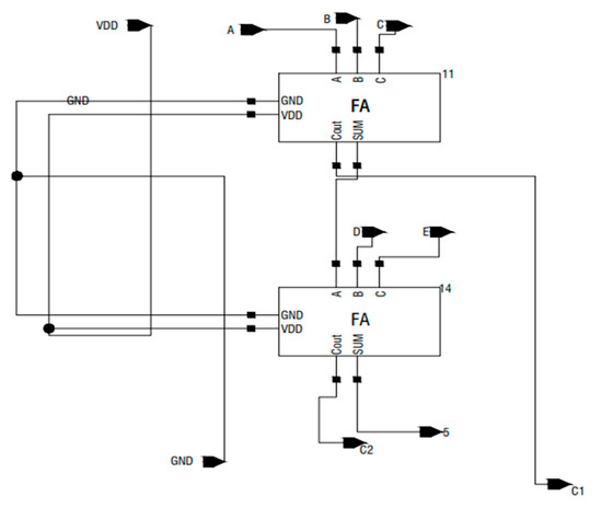 - Maurya, K.A.; Lakshmanna, Y.R.; Sindhuri, K.B.; Kumar, N.U. Design and implementation of 32-bit adders using various full adders. In Proceedings of the 2017 Innovations in Power and Advanced Computing Technologies (i-PACT), Vellore, India, 21–22 April 2017. [Google Scholar]
