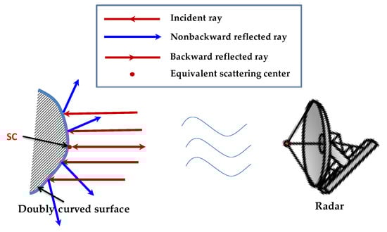 Obviously, for a smooth patch of the curved surface, there is only one ray (red line in Figure 1) that can return to the radar. Then, this ray’s bouncing point on the surface patch can be seen as an effective SC (red point in Figure 1).