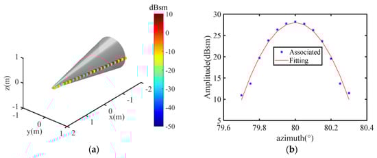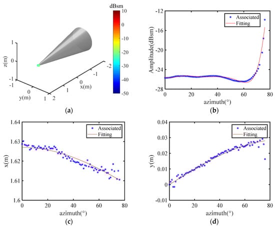 Similarly, considering different scattering structure types, appropriate curve/surface fitting algorithms were applied to realize the GSC locations’ representation. The SCs of FF, FD and DD structures are generally fixed/distributed in the elevation and azimuth directions, which can be represented as an amplitude-weighted average location. The SCs of FS and SD structures are generally fixed/distributed in the elevation/azimuth direction and sliding in the other direction, which can be represented as an amplitude-weighted average location and polynomial curve function. The SCs of an SS structure are generally sliding in both the elevation and azimuth direction, which can be represented as a 2D polynomial surface function.