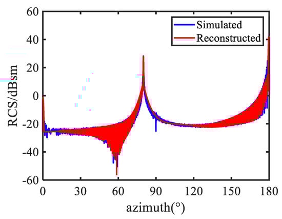 To construct the target GSC model, the required parameters of the number of angles, amplitude and location for the six canonical structures are listed in Table 3. The simulated and reconstructed RCS curves are depicted in Figure 16, while the root-mean-square error (RMSE) was 1.17 dB. The RCS could be accurately reconstructed using only 77 parameters.