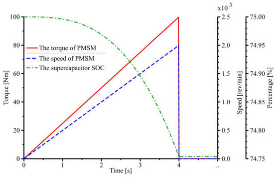 It can be seen that keeping the and the constant, the is larger when the is more significant from Equation (17), i.e., more energy is stored in the supercapacitor. It can be seen that the is smaller when the is larger from Equation (18). In summary, the is related to the . The is related to the .