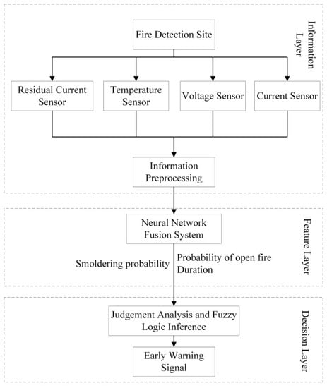 - Yang, X.W.; Zhang, K.; Chai, Y.; Li, Y. A Multi-sensor Characteristic Parameter Fusion Analysis Based Electrical Fire Detection Model. In Proceedings of the 2018 Chinese Intelligent Systems Conference, Wenzhou, China, 20–24 February 2018; Springer: Singapore, 2019; pp. 397–410. [Google Scholar]