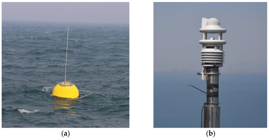 Measurement equipment: (a) buoy, (b) ultrasonic meteorological observing system.