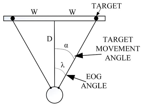 The relation between D, W, and the angles to perform different visual stimulations is expressed by Equation (1).
