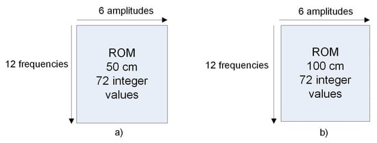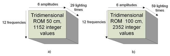 Storage of LED lighting times. ROMs with 144 values (72 each) for the SPCS and SSAC tests for (a) 50 cm and (b) 100 cm.