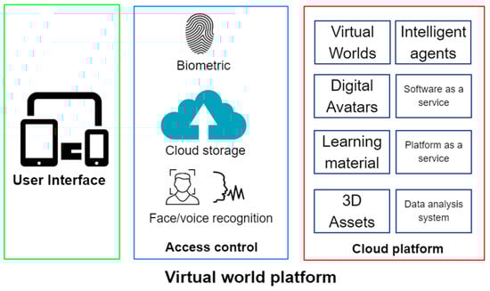 Over the years, people have used various technologies to adapt education to modern mediums. Online learning using personal computers (PC) and mobile devices has become very popular in the last few years. Modern learning platforms include sharing, monitoring, personalized experience, and different client applications (desktop, mobile, web-based) for accessing the content. Moreover, new mediums that we can use for online learning such as metaverse or virtual worlds (VWs) platforms are emerging. We can define VWs as follows: “Simulated persistent space based on the interaction with a computer, inhabited by several users, who are represented by iconic images called avatars, who can communicate with each other in a synchronized way” []. VW integrates several technologies into one platform, which includes audio, video, webcam, text chat, voice chat using voice over Internet protocol (VoIP), graphical editors, and digital avatars. For building VWs, we can use software development tools such as game engines. Game engines provide basic building blocks (rendering, object manipulation, scripting, and other computer graphics features) for VW development. In addition, for designing a high-quality computer graphics-based software, we should follow the best practices and standards regarding user experience design and software optimization []. Collaborative virtual environments (CVEs) are VWs that provide a richer collaborative arena for social encounters and community building. Another name for CVEs is virtual learning environments (VLEs), the universal term in the literature associated with education. Examples of CVEs include social entertainment, multiplayer games, interactive art, simulations, distance learning, architectural walk-throughs, cultural heritage, etc. CVEs can offer many features to students who need support in their learning process []. In the serious game domain and gamification, there are initiatives for interconnection with systems such as massive open online courses. Gamification is a method that provides an effective layer to learning in the context of engagement and motivation []. Furthermore, the VW solutions could provide another way to overcome boundaries during the COVID-19 lockdown while adding a new dimension where we can walk around and communicate with people (digital avatars).