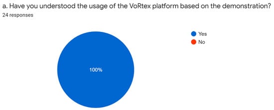 The majority of participants have previous experience with multi-user environments. After the onboarding session, all participants understand how the platform works and can understand the usage of the VoRtex platform in collaborative learning and interaction between users (Figure 10).