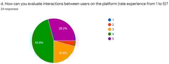After real-time interaction inside the platform using digital avatars and platform 3D assets, participants estimated overall experience on a scale from 1 to 5, 1 being the lowest score (low quality) and 5 highest scores (high quality). Based on results, 41.7% estimated VoRtex as a high-quality solution while more than 90% gave a score of 3 or larger (Figure 13).