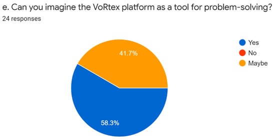 Regarding the MicroLesson feature, we included quest-based challenges inside the lesson about “Virtual Reality”. Participants could ask the virtual agent about VR-related topics and later answers question. MicroLesson is in the very early stage of development; using this feature, we can introduce gamified challenges related to puzzle-solving using the law of physics or in-world exploratory activities (treasure hunt, escape room, location analysis), and develop a game-oriented environment like with Fortnite Creative mode []. The participants recommended testing the MicroLesson feature with students inside other sectors like primary and secondary education. MicroLesson feature and problem-solving design were satisfactory for most participants (Figure 16).