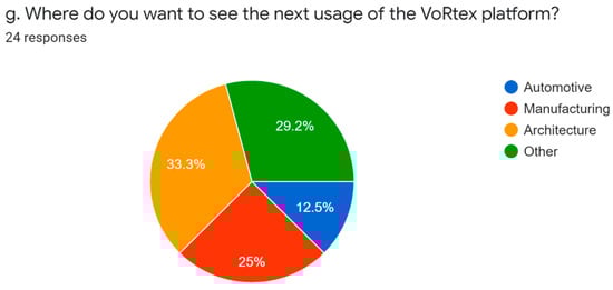 In this paper, we additionally organized user testing campaigns with a group of users that experienced the VoRtex platform in the early stage of development (prototype). We can find more about user demography inside virtual worlds from Spence’s research []. Based on research, virtual world platforms are mostly used for content creation and socialization (more than 50%) and 10% for education. In addition, platforms are mostly designed for younger audiences (10–15-year-olds). Second Life (design for content creators and serious gaming) is one of the most mature platforms where users are between 30 and 40 years old. Regarding similar platforms for content creators, users vary between 20 and 40 years. Moreover, the newer platforms mostly have a slightly younger audience. VoRtex is designed for content creators and online education and based on Spence’s research [], our target audiences are between 18 and 38 years old (millennials and Gen Z).