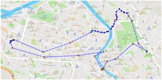 Then, a final pass of the clustering algorithm of the initial interaction is made as a final cleaning of the route, aggregating the different static points generated after analyzing the small deviation from the user’s home. Finally, we consider that a point of interest has been found if the user has stayed in the same place for a minimum of five minutes.