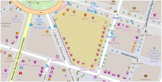 We have opted to use OpenStreetMaps (OSM) as our main data source for the reverse geocoding process. There have been two main reasons to select OSM as the main data source for the semantic location extraction. First, unlike other Geographical Data Providers such as Google Maps or Foursquare, all the data in OSM is publicly available in different forms such as database dumps of precise locations or various public APIs (Nominatim, Overpass, etc.). Second, OSM provides the geometry of the buildings, a data that we have used in order to enhance the reverse geocoding process, as it will be explained in Section 3.2.2. In addition to these two main reasons, OSM provides: