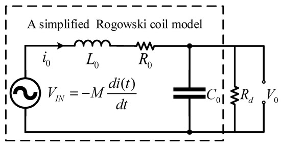 According to Figure 2, the RLC circuit behavior for the Rogowski coil can be described by Equations (5) and (6) [19,29].