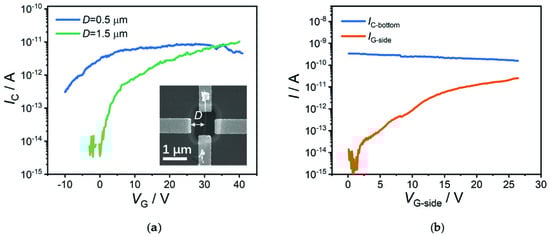 - Han, J.-W.; Moon, D.-I.; Meyyappan, M. Nanoscale Vacuum Channel Transistor. Nano Lett. 2017, 17, 2146–2151. [Google Scholar] [CrossRef]