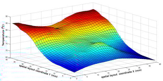 In Figure 10, the average temperature of the Ethernet circuit is presented. The considered dynamic thermal management (DTM) constraints were and . Note that for this case, the temperature window w (Figure 9) was . The average temperature of the circuit at the hotspot was slightly higher than , while the average temperature of all the gates of the longest path was .