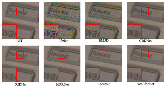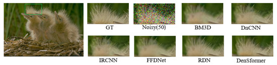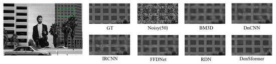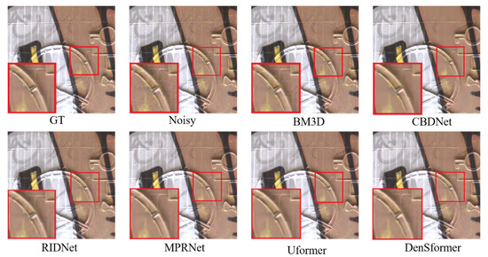 30. Plotz, T.; Roth, S. Benchmarking denoising algorithms with real photographs. In Proceedings of the IEEE/CVF Conference on Computer Vision and Pattern Recognition (CVPR), Honolulu, HI, USA, 22–25 July 2017; pp. 1586–1595. [Google Scholar]