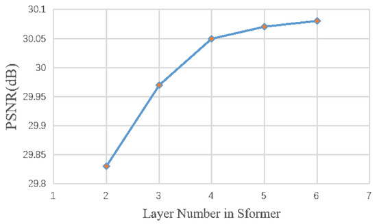 Figure 8. Impact of ETransformer layers in Sformer. Results are tested on Kodak with Οƒ = 50 .
