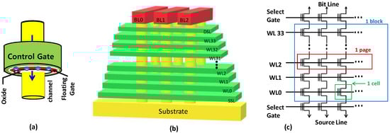 - Micheloni, R.; Aritome, S.; Crippa, L. Array Architectures for 3-D NAND Flash Memories. Proc. IEEE 2017, 105, 1634–1649. [Google Scholar] [CrossRef]