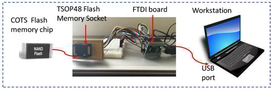 COTS flash memory chips use a standardized low-level interface, which was developed by the Open NAND Flash Interface (ONFI) working group, a consortium of flash memory manufacturers []. The ONFI specifications define: the standard physical interfaces; the chip identification mechanisms; a standard command set for reading, writing, and erasing the NAND flash; the timing requirements; and the data integrity features.