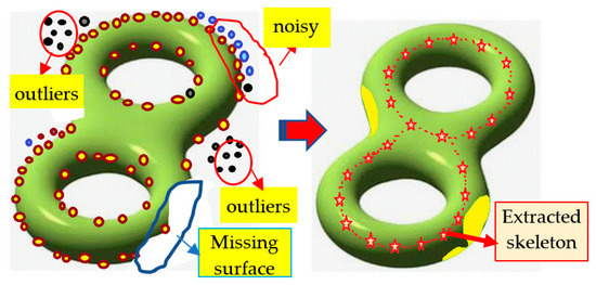 - Huang, H.; Wu, S.; Cohen-Or, D.; Gong, M.; Zhang, H.; Li, G.; Chen, B. L1-Medial Skeleton of Point Cloud. ACM Trans. Graph. 2013, 32, 1–8. [Google Scholar] [CrossRef] [Green Version]