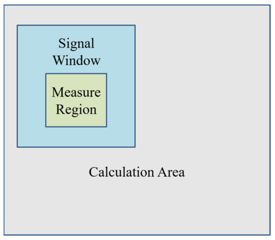 According to different application situations, the merit function has different selection rules. For beam splitting, it is more appropriate to select diffraction efficiency and root–mean–square error as the merit function. It should be noted that, different from many efforts, we set the effect area of diffraction efficiency and root–mean–square error differently. The signal window (effective output area) is selected as the calculation location of root–mean–square error, and the measurement area (beam splitting area) is selected as the calculation location of diffraction efficiency, as shown in Figure 2. The setting of the merit function can distinguish the diffraction efficiency and fidelity of the output beam to the greatest extent and realize the optimal orientation optimization.