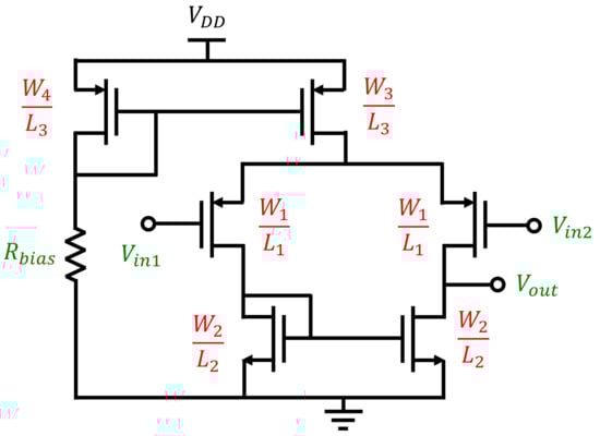 - Gray, P.R.; Hurst, P.J.; Lewis, S.H.; Meyer, R.G. Analysis and Design of Analog Integrated Circuits, 6th ed.; Wiley Publishing: Hoboken, NJ, USA, 2017. [Google Scholar]