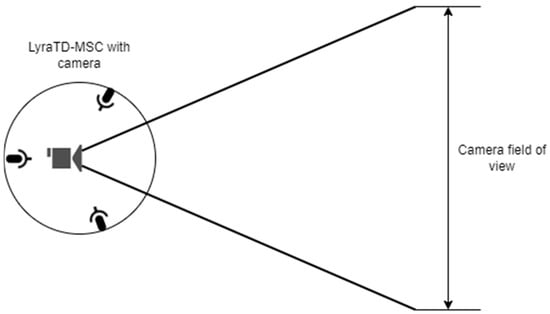 Voice perception is inherently multimodal (in this case, audio-visual (AV)). In addition to the acoustic speech signal reaching the listener’s ears, the presence of the face may be used to identify the appropriate person seeking interaction. Therefore, the model combines information about the presence of all detected faces and associates this information with the direction of the sound. The direction of the sound is precisely determined using a multi-microphone array, as shown in Figure 2.