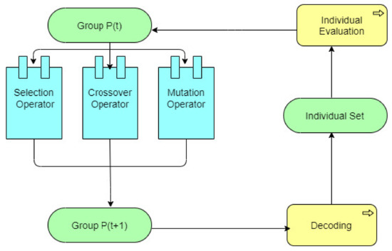 Figure 6 explains entire structure of the mapping of the Genetic Algorithm with the neural network. In Figure 4, the network has m inputs and n outputs, the hidden layer contains s neurons, and and are the connection weights between the information layer and the hidden layer and the hidden layer and the output layer, respectively. The threshold value associated with the hidden layer is . is the input of the hidden layer and is calculated by Equation (1).
