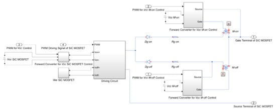 As shown in Figure 4, the proposed gate driver is derived by a driving circuit that activates and deactivates SiC MOSFET by applying the control voltages VCC and Vee, respectively. The variation of the VCC is conducted with the aid of a forward converter which is inserted between the VCC power supply and the driving circuit, providing dc-dc voltage isolation, as well. In this way, the VCC of SiC MOSFET can be actively changed by varying the duty cycle of the PWM signal which controls the forward converter switch. The control of the duty cycle, as well as the driving pulse of the forward converter switch, is performed by the digital controller. In this way, static current balance can be achieved by the proper adjustment of the correct VCC.