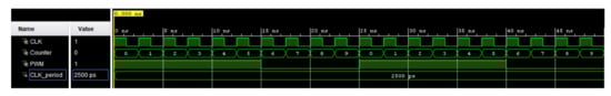 The minimization of current unbalance depends on the magnitude of the maximum clock frequency of the digital controller. In order for the controller to generate each PWM signal, a step-up counter with reset ability is used. As shown in Figure 5, for each positive edge of the clock, the counter increases by one step and resets when its count reaches a certain value.