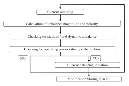 Once the current sampling process is complete, the digital controller estimates the magnitudes and the polarities of the three unbalances, checking if static or/and dynamic unbalance exists. The controller does not initiate the current balancing process from the first cycle but when the operating process has been entered in steady-state. In this way, the current unbalance estimation is more precise.