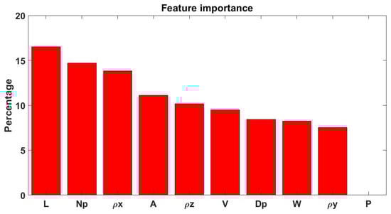 Finally, the features importance, according to the information gain, was computed and illustrated in Figure 2 after a transformation into percentage values. The top-3 features to perform the classification resulted L, Np and ρx.