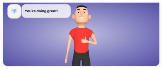 Additionally, knowing the best way to interact with a certain person will also be fundamental to motivate that person to be healthier [16]. In this sense, several studies were also observed using either physical or virtual robots or assistants to directly interact with the elderly person and attempt to persuade him/her to be healthier [8,17,18,19,20,21,22]. In fact, the authors in [23] explained the importance of intelligent cognitive assistants to support attitude and behavior changes, which are crucial to protect against the deterioration of cognitive and mental health. Furthermore, other authors explain the importance of building a relationship with a virtual entity, and why this approach could be meaningful for the elderly person, promoting feelings of responsibility and even nostalgia as they to look after another person/being [24,25,26].