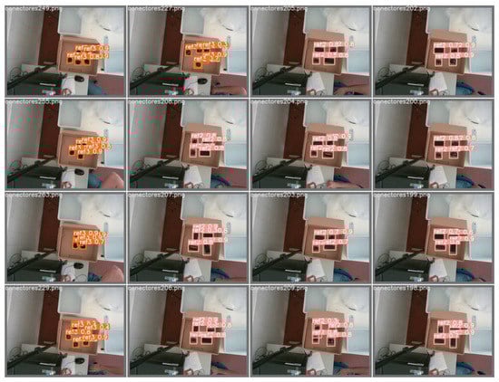 Figure 13 depicts classification results produced by the image testing phase of the training process. These were used to validate and fine-tune our classification model. By comparing with the first experiment (Setup 1), in this experiment, all five connector references were detected with good accuracy, even in the presence of connectors with similar characteristics, such as shape and color.