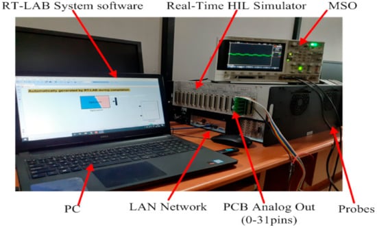 The HIL results were tested using the RT-LAB OP5700 HIL simulator, which consists of the programmable control board (PCB-E06-0560), DSO-X 3014A. The PCB can be used to exchange data between the simulation and real controllers via analogue outputs and digital inputs. The real-time results configuration of test bench is shown in the Figure 8.