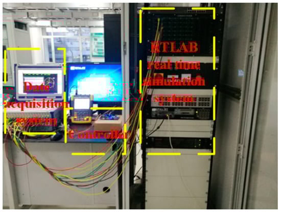 The proposed method is tested using the RTLAB semi-physical simulation system as shown in Figure 9. This simulation platform comprises the RTLAB target computer OP5600, power supply, RTLAB host computer, and data acquisition system DEWE5000. The host computer communicates with RTLAB through TCP/IP, and the controller communicates with RTLAB through the data acquisition board OP5142.