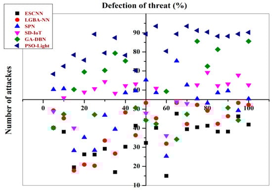 Three-layer supervised intrusion detection was developed in [] to detect the weakest IoT devices in smart home applications. First, the IoT device’s normal and abnormal behaviors are classified, malicious packets are identified at the time of the attack, and attacks like denial of service (Dos), spoofing, man-in-the-middle, and replay attacks are detected successfully. This process detects multistage attacks with a minimum false positive rate. A genetic optimized deep belief network (GA-DBN) algorithm was introduced in [] to create an effective intrusion detection model. This work predicts various types of attacks using different number genetic algorithm iterations and multiple hidden layers. The optimized classifiers classify the attacks with the maximum detection rate on the NSL-KDD dataset. In addition, this process minimizes the computation complexity. ‘Distributed denial of service,’ a general term for these kinds of attacks, refers to them all. Botnets are online devices used to flood a target website with fake traffic. Many internet businesses are vulnerable to DDoS attacks, and the consequences can be severe. A security that is predictable, reliable, effective, and trustworthy saves money. Operating and capital costs save money because it does not need to utilize a third-party scrubbing center, hire additional IT security staff, or purchase more bandwidth. As a result of restricted access, real users may not find information or carry out their desired actions. A blemish could be thrown on their record.
