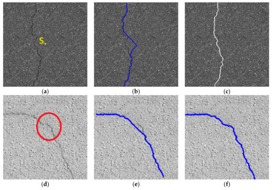 - Amhaz, R.; Chambon, S.; Idier, J.; Baltazart, V. Automatic crack detection on two-dimensional pavement images: An algorithm based on minimal path selection. IEEE Trans. Intell. Transp. Syst. 2016, 17, 2718–2729. [Google Scholar] [CrossRef]