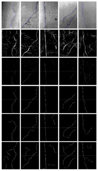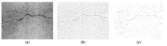 - Kamaliardakani, M.; Sun, L.; Ardakani, M.K. Sealed-crack detection algorithm using heuristic thresholding approach. J. Comput. Civ. Eng. 2016, 30, 04014110. [Google Scholar] [CrossRef]