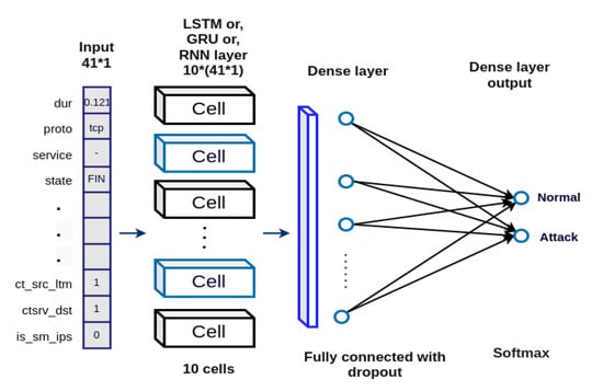 19. Yin, C.; Zhu, Y.; Fei, J.; He, X. A Deep Learning Approach for Intrusion Detection Using Recurrent Neural Networks. IEEE Access 2017, 5, 21954–21961. [Google Scholar] [CrossRef]